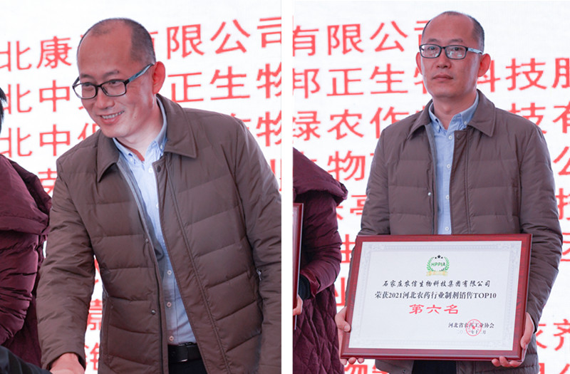 大会第三项内容是发布2021河北农药行业销售榜单等奖项,通过企业自愿报名和农业农村部“农药生产信息调度系统”数据统计排序,河北省农药工业协会在会上发布了《2021河北省农药行业销售TOP10》《2021河北省农药制剂销售TOP10》《2021河北省农药出口销售TOP8》和《2021河北农药行业河南救灾爱心榜单》。