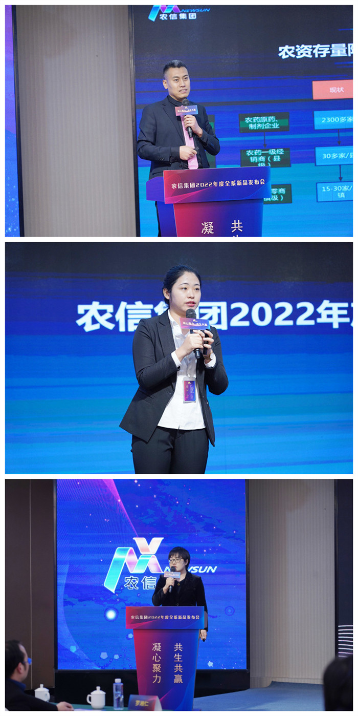 短暂的茶歇之后,农信集团营销中心市场部总监唐彩乐做了《农信集团战略新品——引领提质长效新风口》报告;农信集团营销中心市场部产品经理韩博坤做了《农信集2022年产品布局》宣贯。